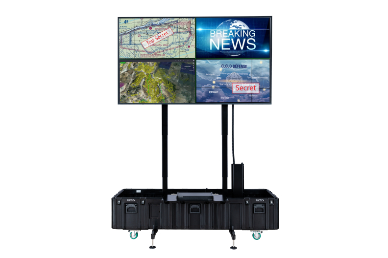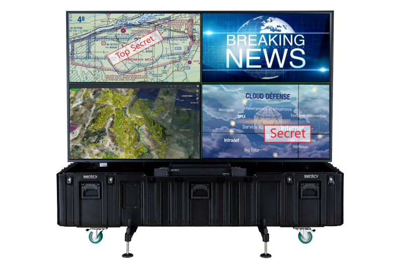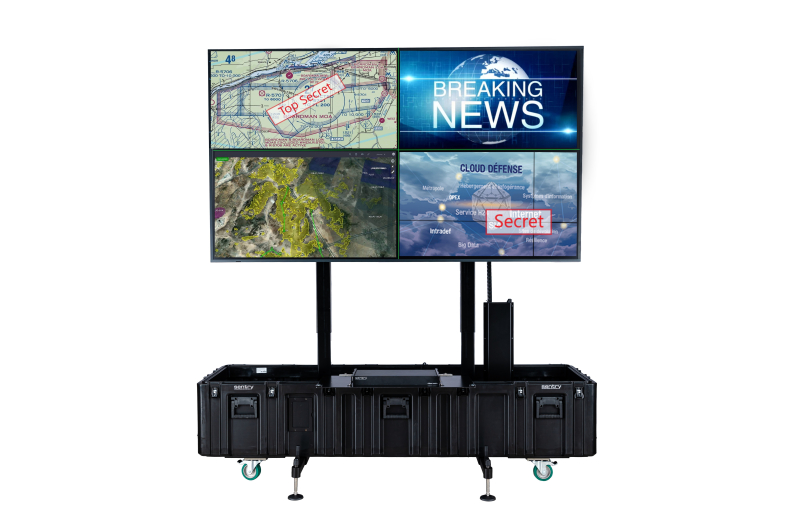 Le système Tout-en-Un SENTRY redéfinit la simplicité et l'efficacité dans les solutions d'affichage collaboratif. Parfaitement adapté pour les espaces confinés et tactiques, ce produit s'intègre parfaitement dans les tentes basses, les abris ou les centres d'opérations tactiques. Avec une empreinte compacte centrée autour d'un seul écran de 86 pouces en résolution 4K, logé dans sa caisse de transport durcie, son déploiement est rapide et sans tracas. Bien qu'il soit compact, il ne perd aucune des normes de sécurité fiables de SENTRY. Notamment, sa conception est adaptée aux terrains inégaux, garantissant stabilité dans divers environnements. Le système Tout-en-Un SENTRY est un témoignage que puissance, sécurité et adaptabilité peuvent être inclus dans des emballages simplifiés.